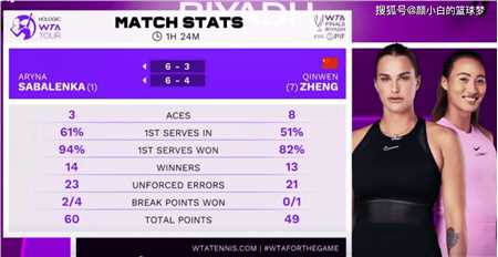 北京时间11月3日凌晨,wta年终总决赛女单小组循环赛,七号种子郑钦文0-2不敌头号种子萨巴伦卡,两盘比分:3-6、4-6。这场比赛萨巴伦卡是一直压着郑钦文,可以说萨巴伦卡状态大勇完全没有给七号种子一点机会。